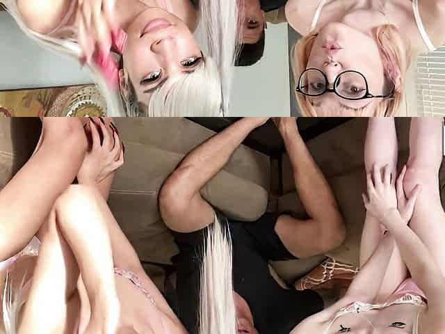 Blonde Skinny Tranny Fucked Anally by Strap on in a Threesome