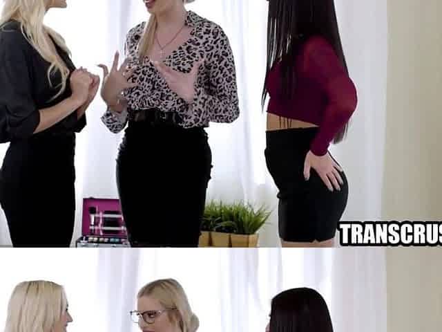 Petite Blonde Trans Threesome