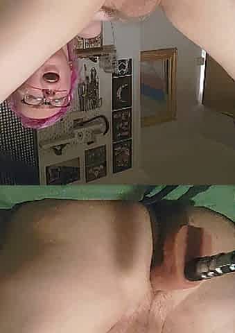 Pink haired transsexual gets railed by lovense screw machine :D