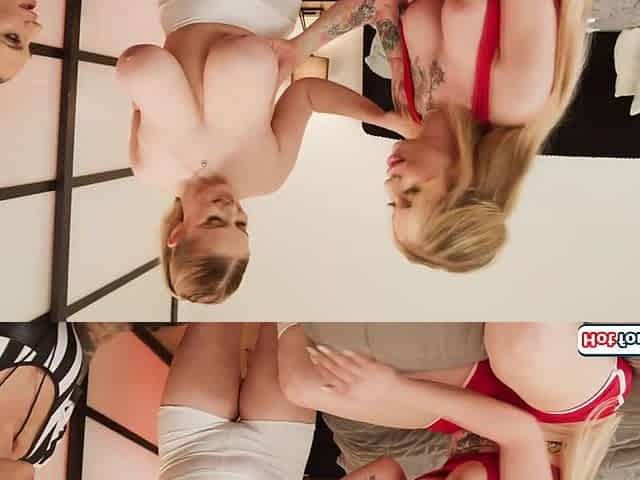 Busty Shemales Invite A Big Tits Blonde Over