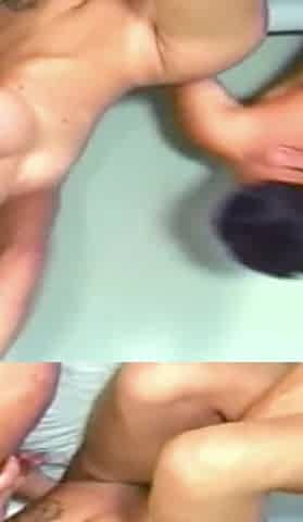 Two Buddies Secretly Have a Threesome with a Blonde Tranny Fucking Her in the Ass