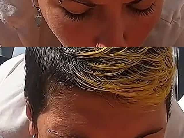 Sassy short-haired woman with yummy facial cumming from XXX