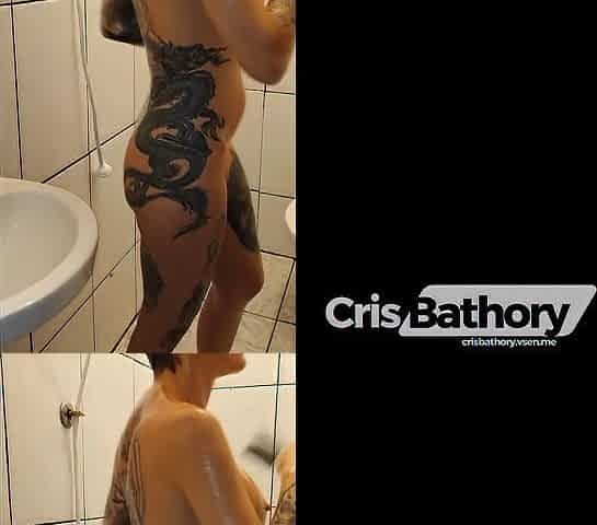 Hot tattoo milf sexy showering