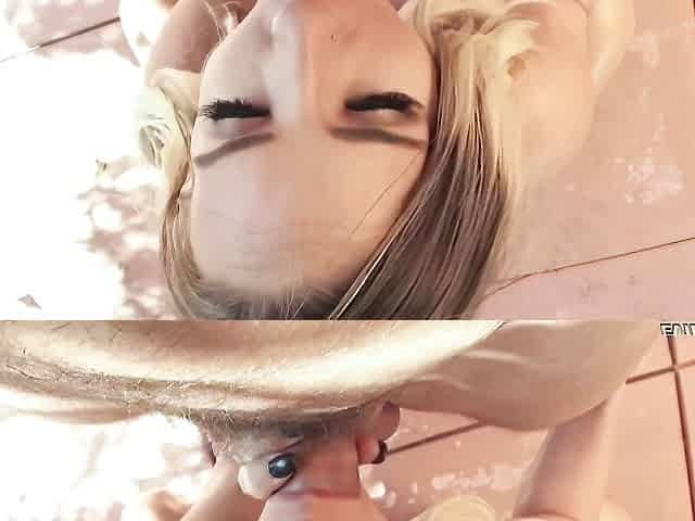 Hot Short Haired Blonde Freak Bangs Her Pussy In The Ba