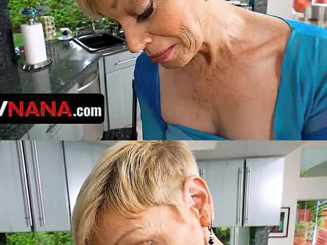 Older Floozy Erikka Ryko Slobbers On Step Grandson's Penis In The Kitchen - PervNana