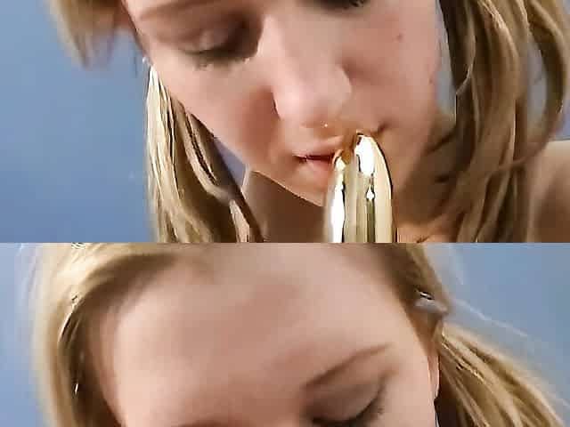 Blonde chick Alexis Malone eats juicy cum from big boners