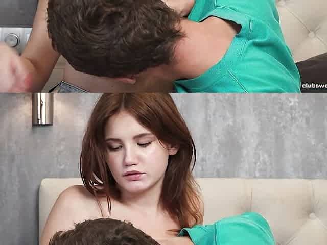 Horny MILF Sara Jay gets titties massaged by son's friend before he blow his load in her mouth