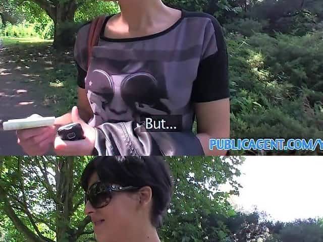 PublicAgent Short haired brunette backseat fucker