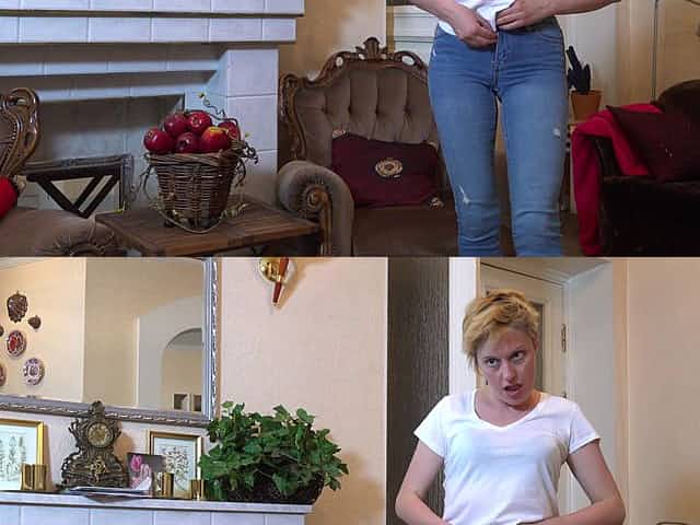 Short hair blondie Nicole enjoys fingering her pussy on the floor