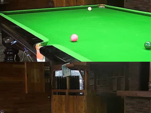 Short haired tramp with sexy tattoos gets playful on a pool table