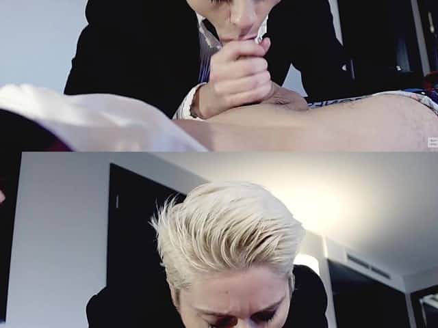 Short hair porn star gets hardcore anal drilling and gives blowjob