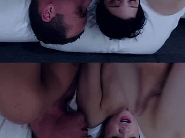 Almost Caught Cheating! Stepfather Fucks Stepdaughter and Creampie Her on One Bed with His Wife
