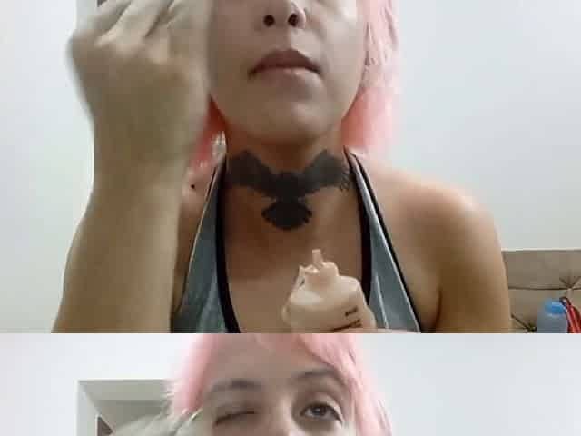 Pink-haired Circusfreak18 shows off her makeup behind the scenes