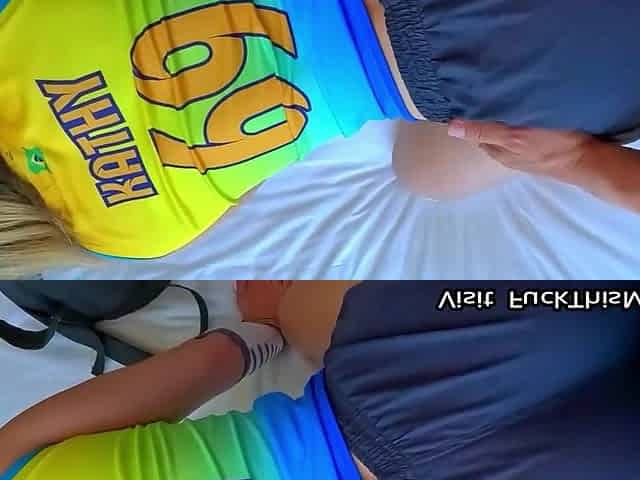 Young blue eyed blonde in homemade anal POV porn in tight jeans shorts