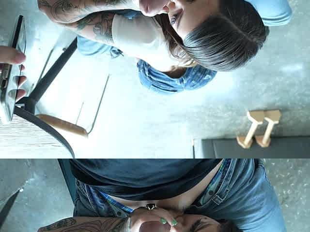 Tattooed babe gives a sloppy blowjob in homemade video
