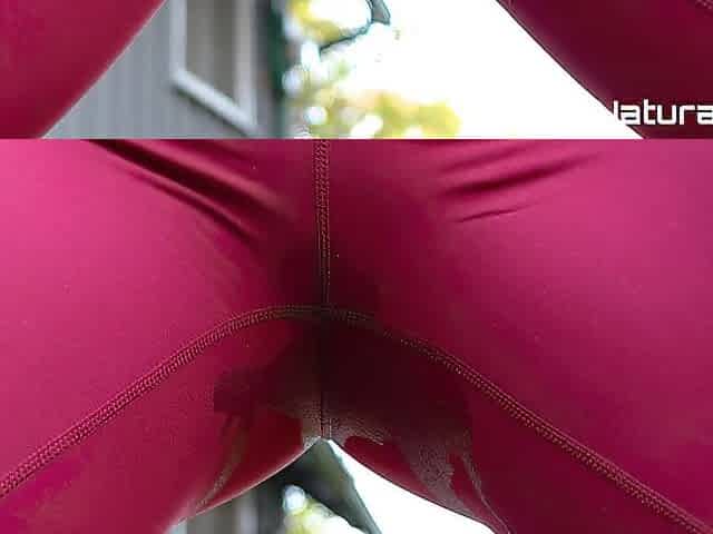 Amateur babe Noa Tavez drops her shorts and pisses all over herself