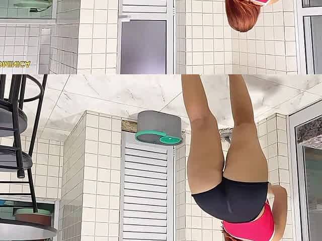 Twin Webcam Series - Hawt Clerk in shorts, hairless with strap