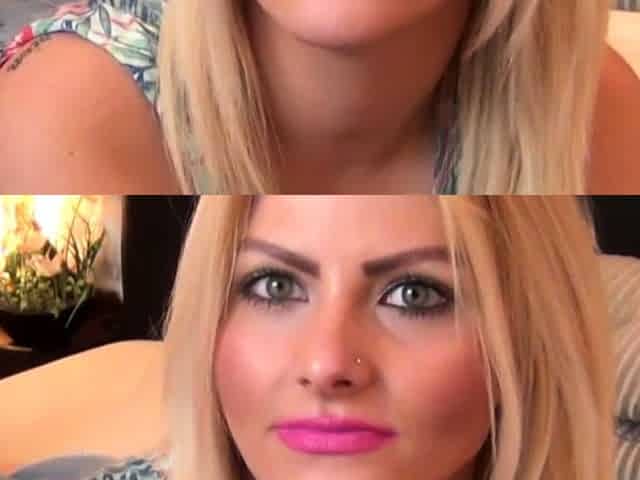Homemade POV video of pretty Lina Lux on her knees giving head