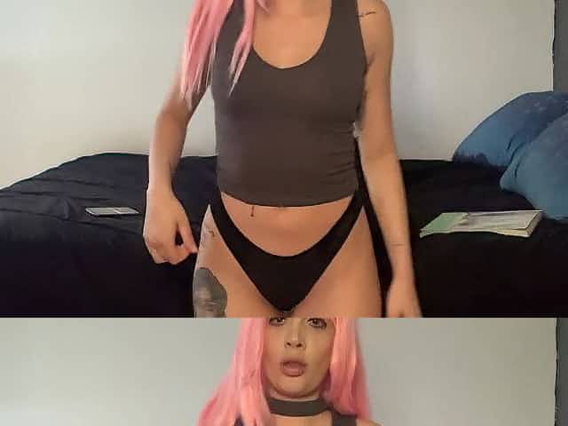 Bimbo Fucks During Livestream in Short Shorts and Heels