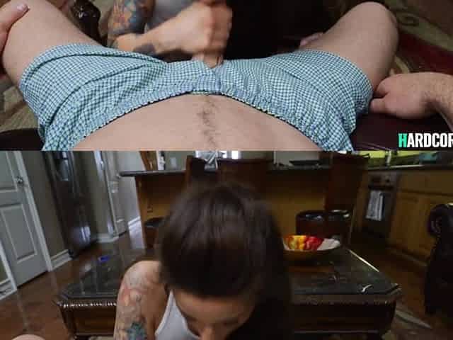 Tattooed blond hair babe blowing and have sex POV PORN