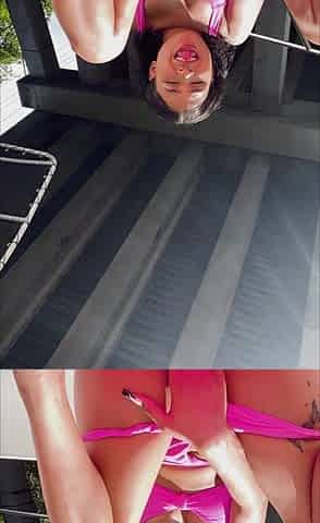 Outdoor lesbian pussy licking with hot Sarai Minx & Maya Farrell