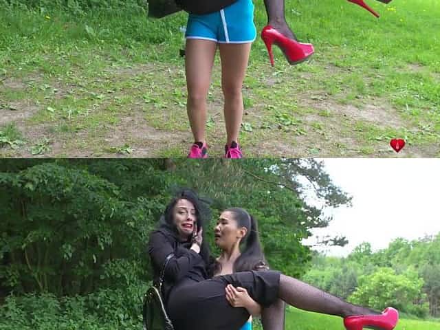 Horny friends Scarlett Moore and Skylar Hart have naughty outdoors fun