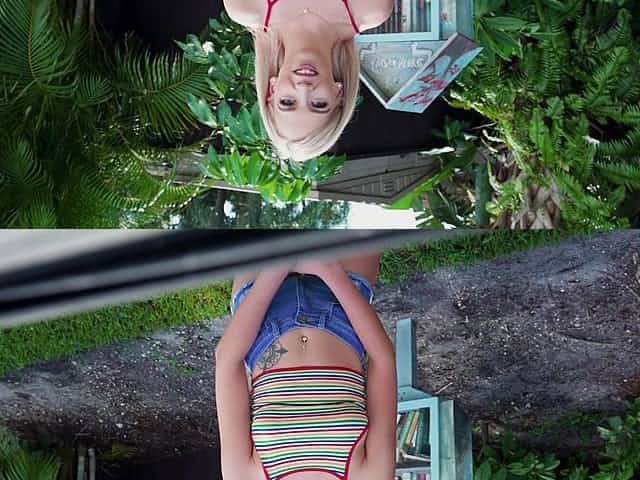 Natural boobs cutie Mia Ferrari takes off her shorts to masturbate