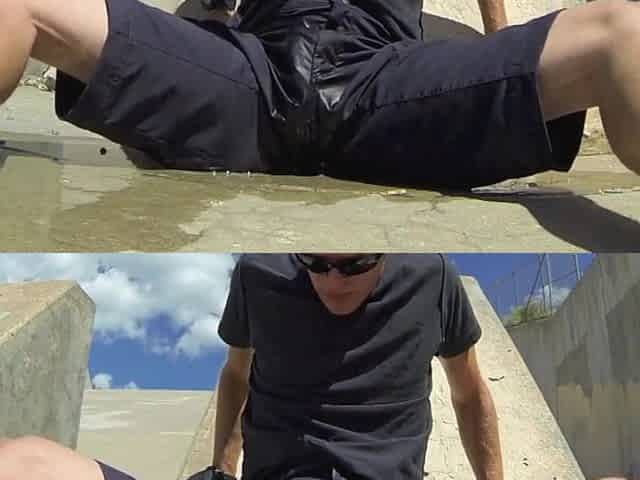 Public Piss And Cum Inside Black Athletic Shorts
