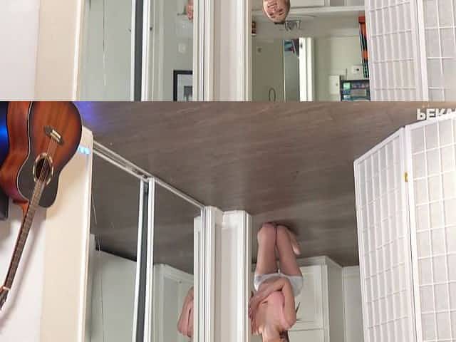 Naughty teen Dayana Kamil is playing with mom's sex toy in the kitchen