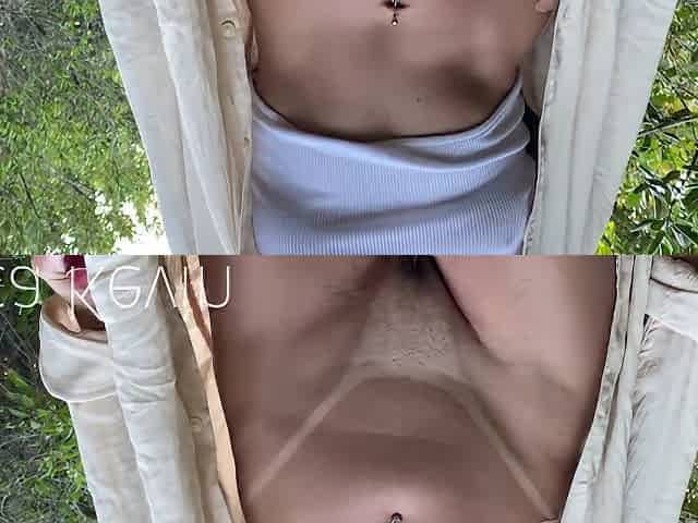 Young Girl With Micro Shorts And Bikini Strips On A Trail I Think I Was Caught!