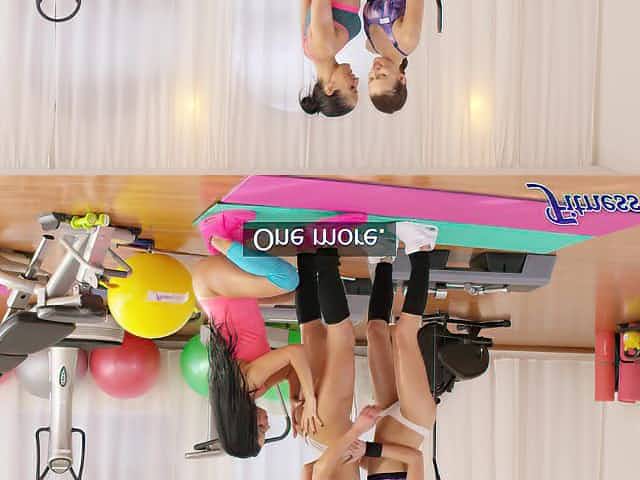 Puss loving Erica Black enjoys having a lesbian threesome at the gym