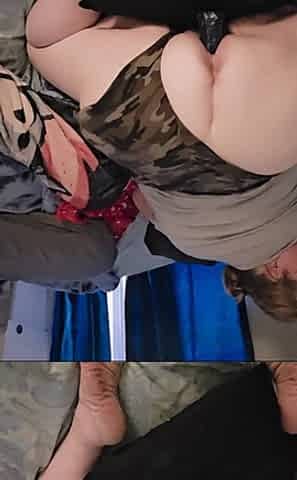 POV — Petite fabric to the side, I spit on her butt and bang her hard until I cum on her back (and keep