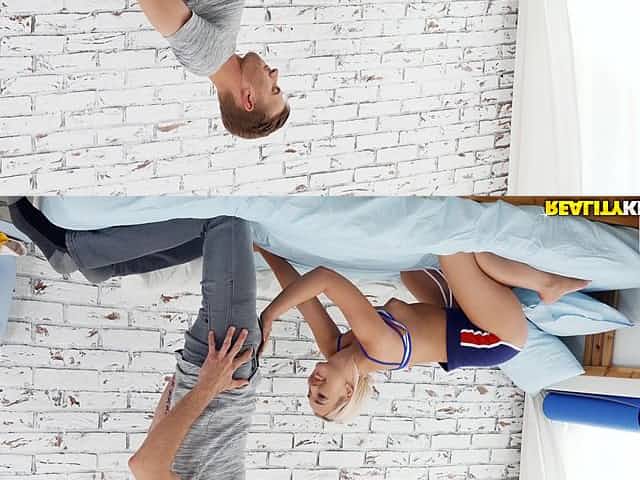 Blonde porn star with nice big tits enjoying a hardcore fuck in her bedroom