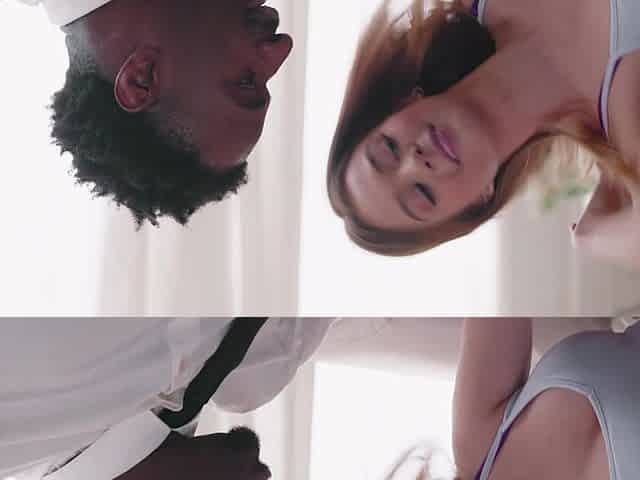 Cuckold husband lets his wife Nikki Sexx ride a large black dick