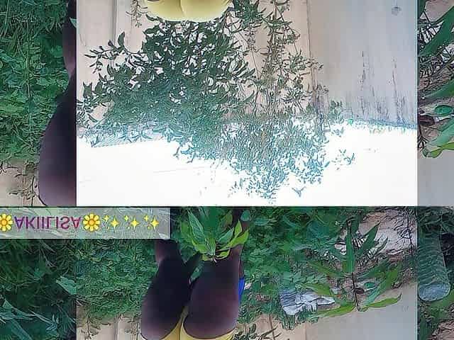 Afro gardener AKIILISA checking out the fruits of the season/lover's Tshirt and small butt short/
