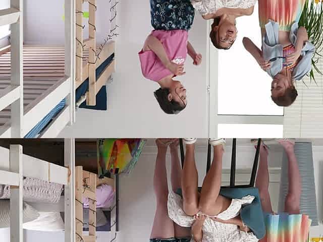 FFM threesome on the sofa with blonde Megan Rain & Karlie Simon