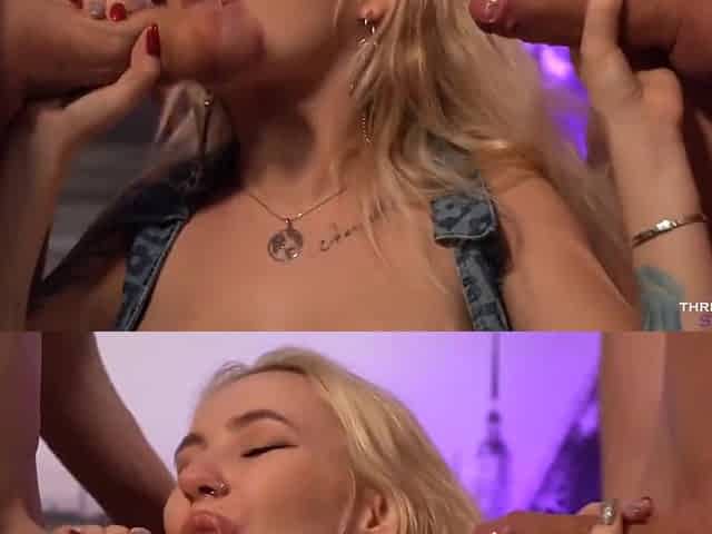 Blonde slut shows boyfriend what he'd be missing as she goes on a trip