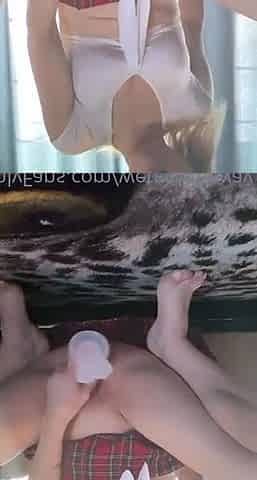 Femboy petticoat masturbation with a toy and showing cute booty