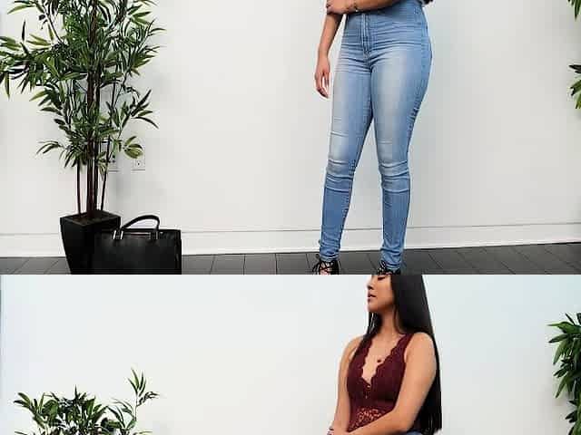 Slim Gorgeous Brunette Reine Vixen Shows off Her Amazing Long Legs in Tight Pantyhose