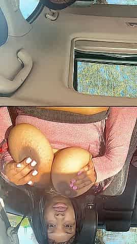 Marvelous titty black shows off large MELONS in car Insta@pinkyy