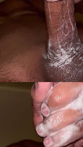 Sexy stud works out his wang in the shower