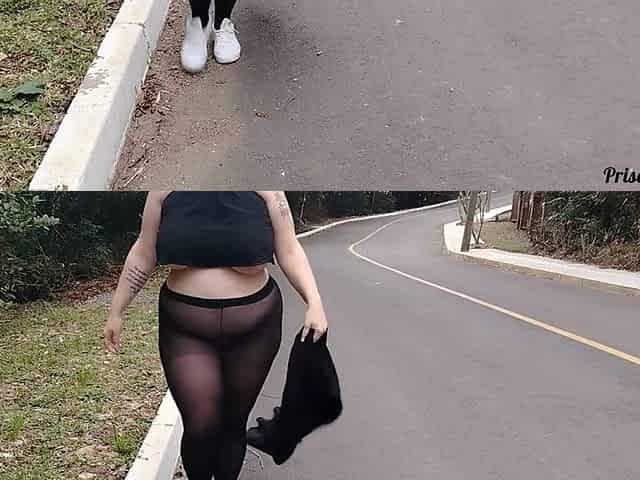 My Stepmother in Transparent Pants Without Panties Showing off on the Street.