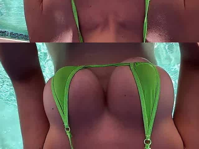 European Stepmom Artemisia Love showing her soaked bazookas in a bikini in the pool