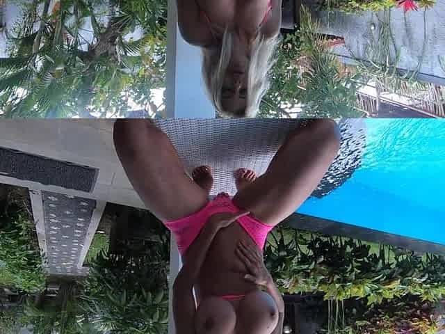 MILF Jenn Cameron's outdoor bikini, butt plug and masturbation show