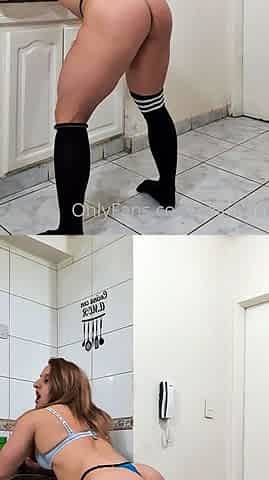 MiraLocks brunette in black stockings shows juicy ass