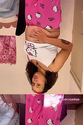 Valentina Ross shows off her sweet and puffy clit in a tiny microskirt