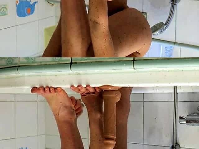 Horny Brunette Caught Masturbating At The Shower And Gets Help Immediately