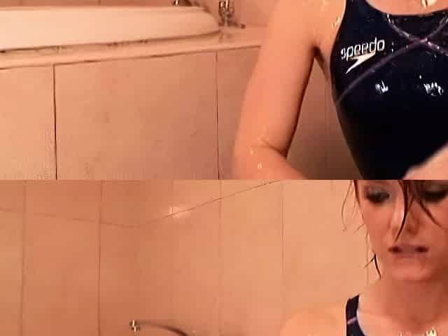 Wet Pussy - Brunette babe masturbates and dives in her piss