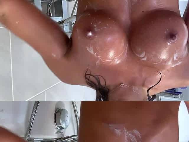 Awesome Big Boobs Blonde Masturbates In The Shower