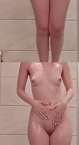Beautiful Brunette Showers in Her Bathroom, and I Seduce Her to Fuck Her Tantaly Doll After Her Show